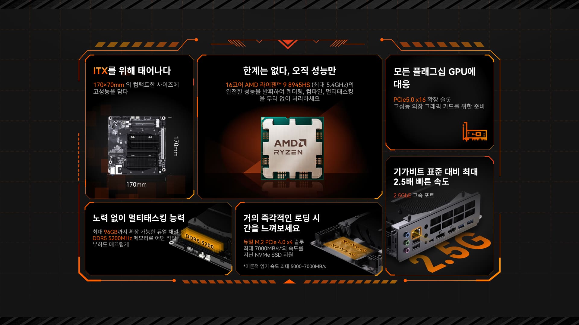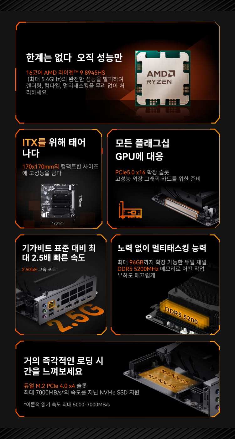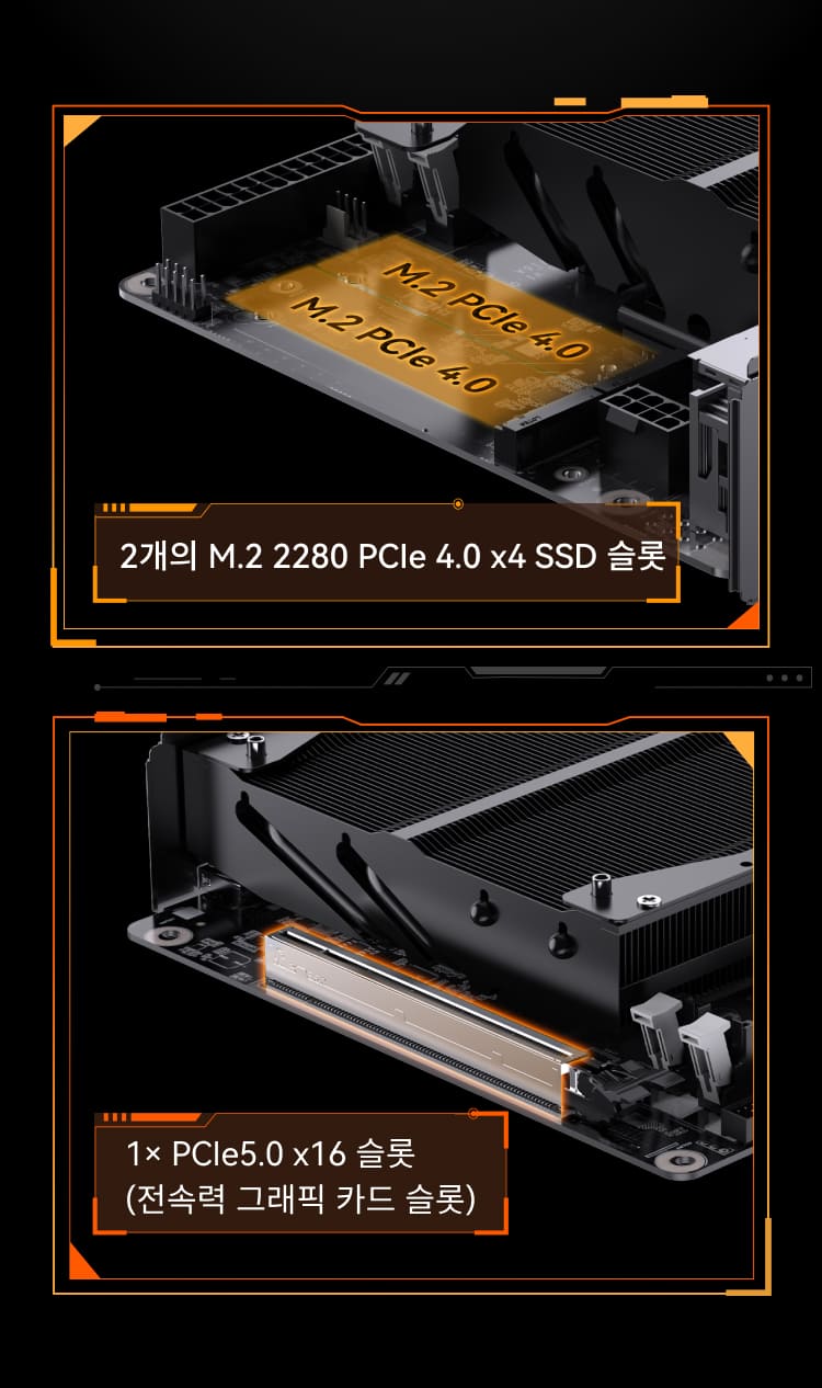 2×M.2 2280 NVME SSD 슬롯(최대 4TB, PCIe4.0 x4)