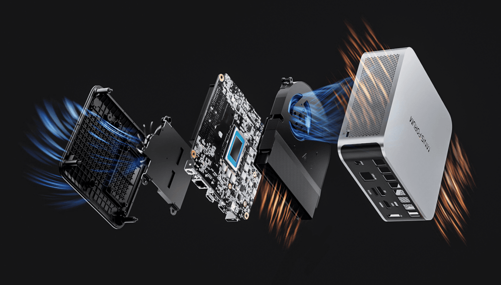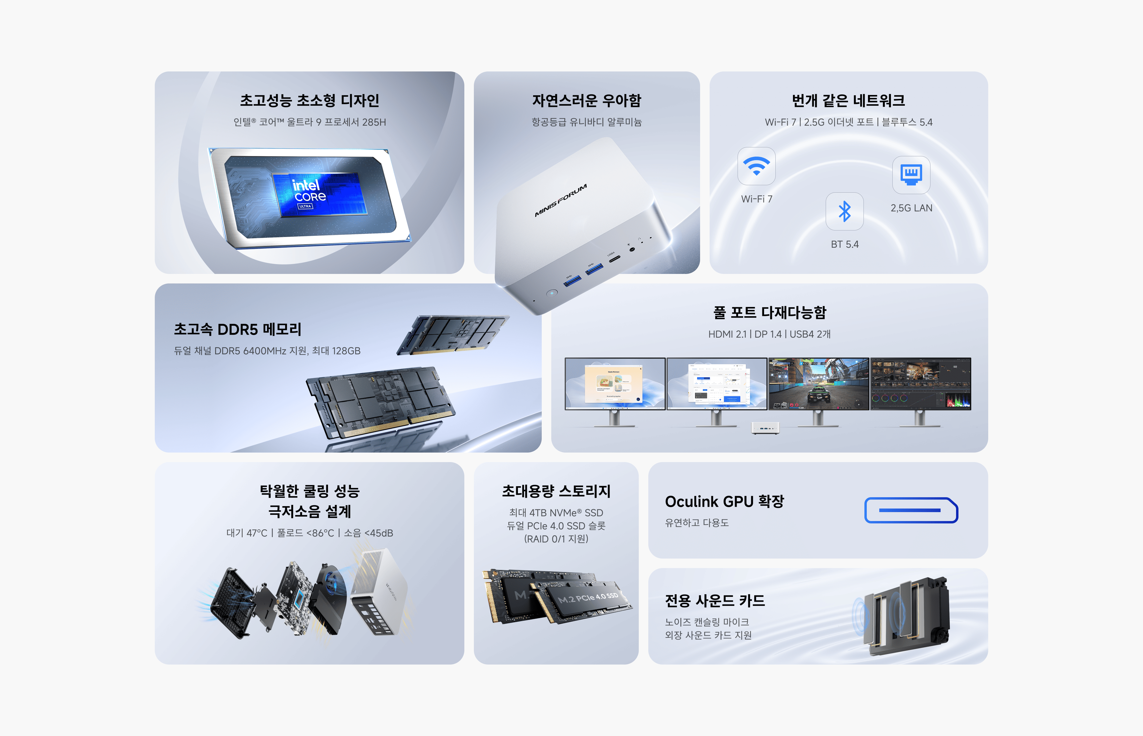 대형 저소음 블레이드가 적용된 듀얼 팬 시스템이 CPU, 메모리, SSD의 효율적인 열 관리를 보장합니다.