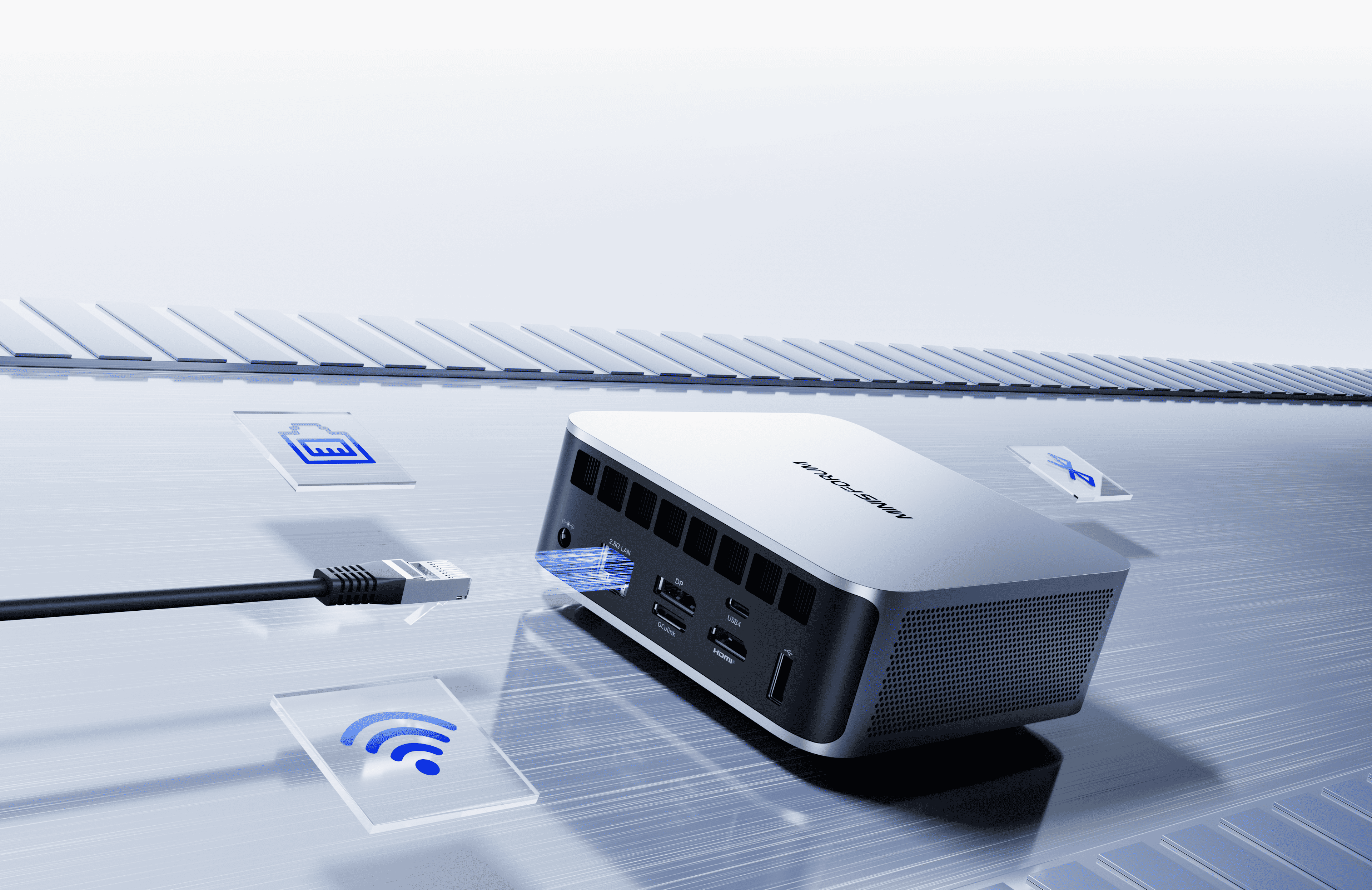 내장된 스마트 노이즈 감소 사운드 카드로 회의 중 선명한 음질을 구현하는 동시에, USB 오디오 기기 연결을 통한 고품질 사운드 업그레이드 및 다양한 장면 전환 시 원활한 소스 전환이 가능한 다용도 오디오 솔루션을 제공합니다.