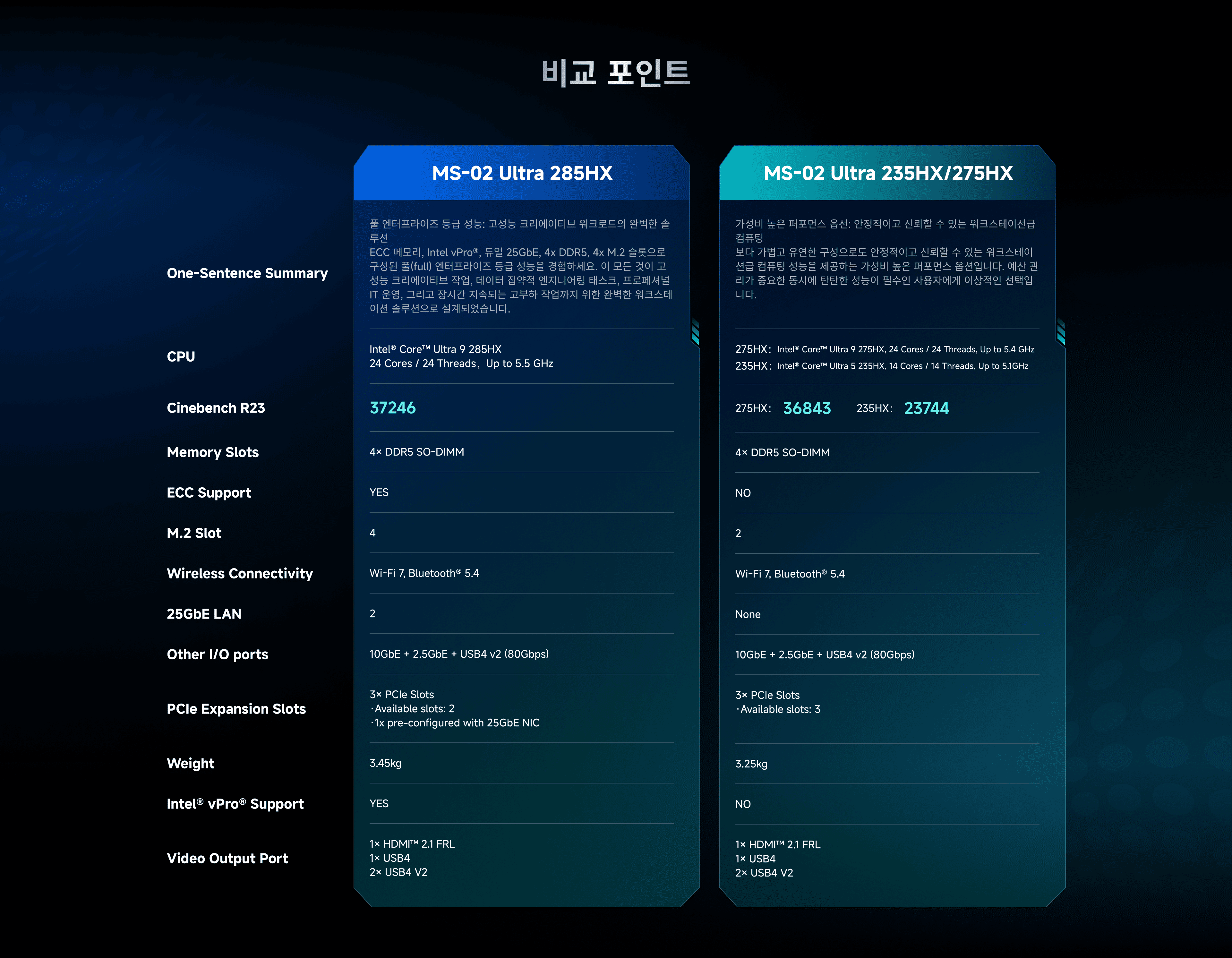 4 × DDR5 SO-DIMM 슬롯(ECC 지원, XMP 오버클럭킹은 지원되지 않음)