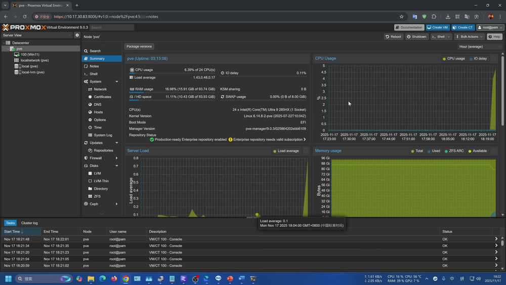 소음 수준(100% 부하): 46dBA(50cm) (미니포럼 랩 환경)