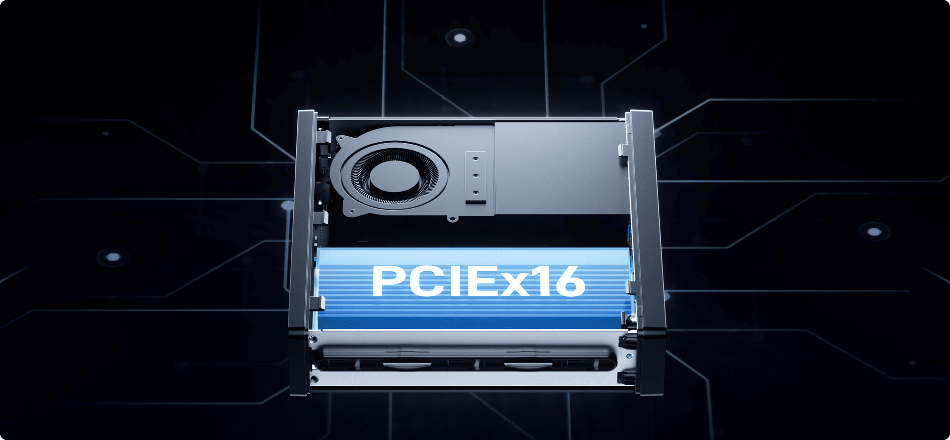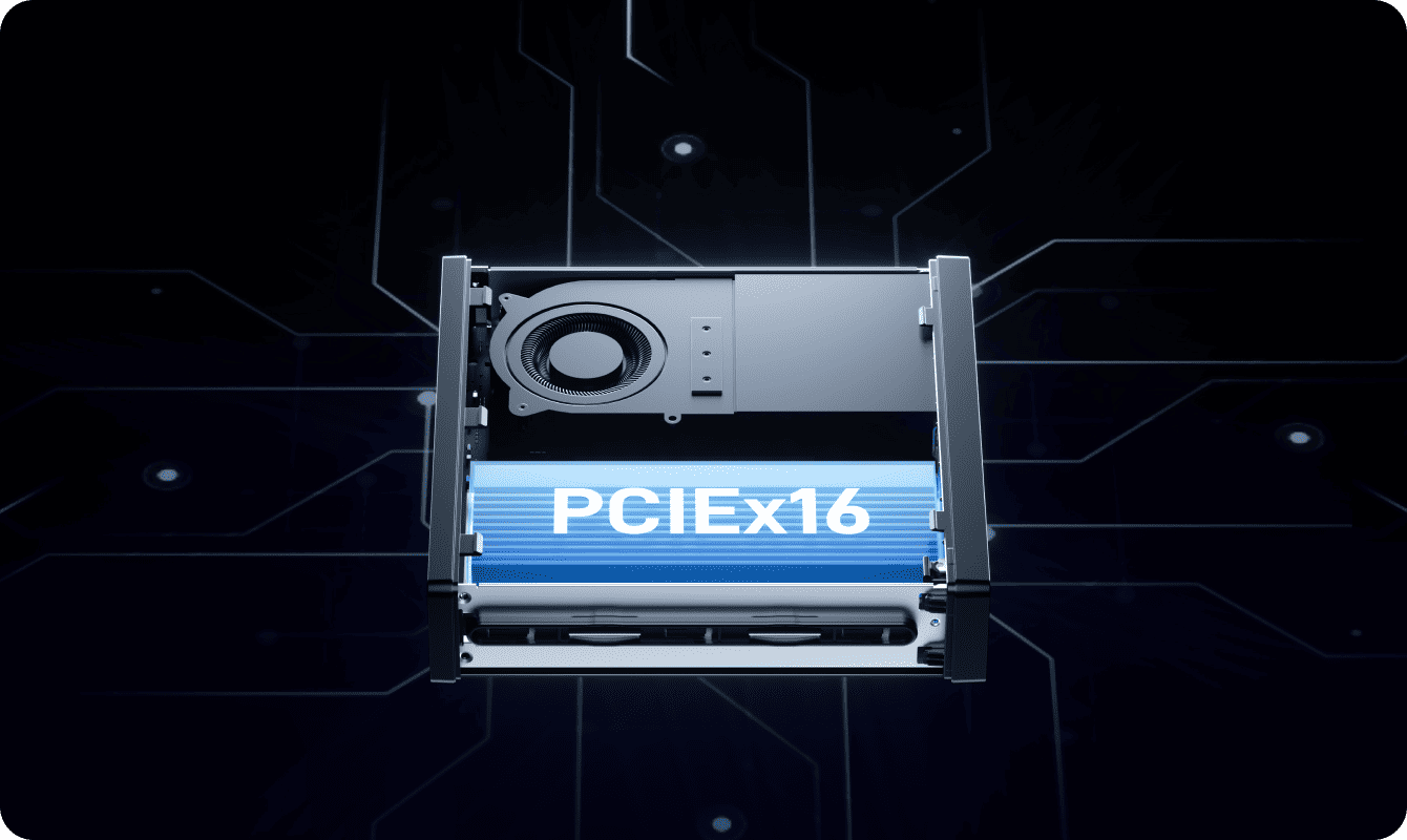 PCIe x16 슬롯을 통해 모델 가속화 또는 GPU 메모리 활용을 위한 외부 GPU 연결을 지원하여, 유연하고 확장 가능한 AI 실험 환경을 구축합니다.
